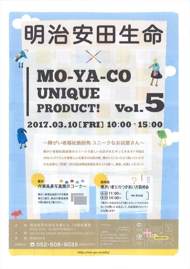 次回は明治安田生命×MO-YA-KO UNIQUEPURODUCT! Vol5に出店します。